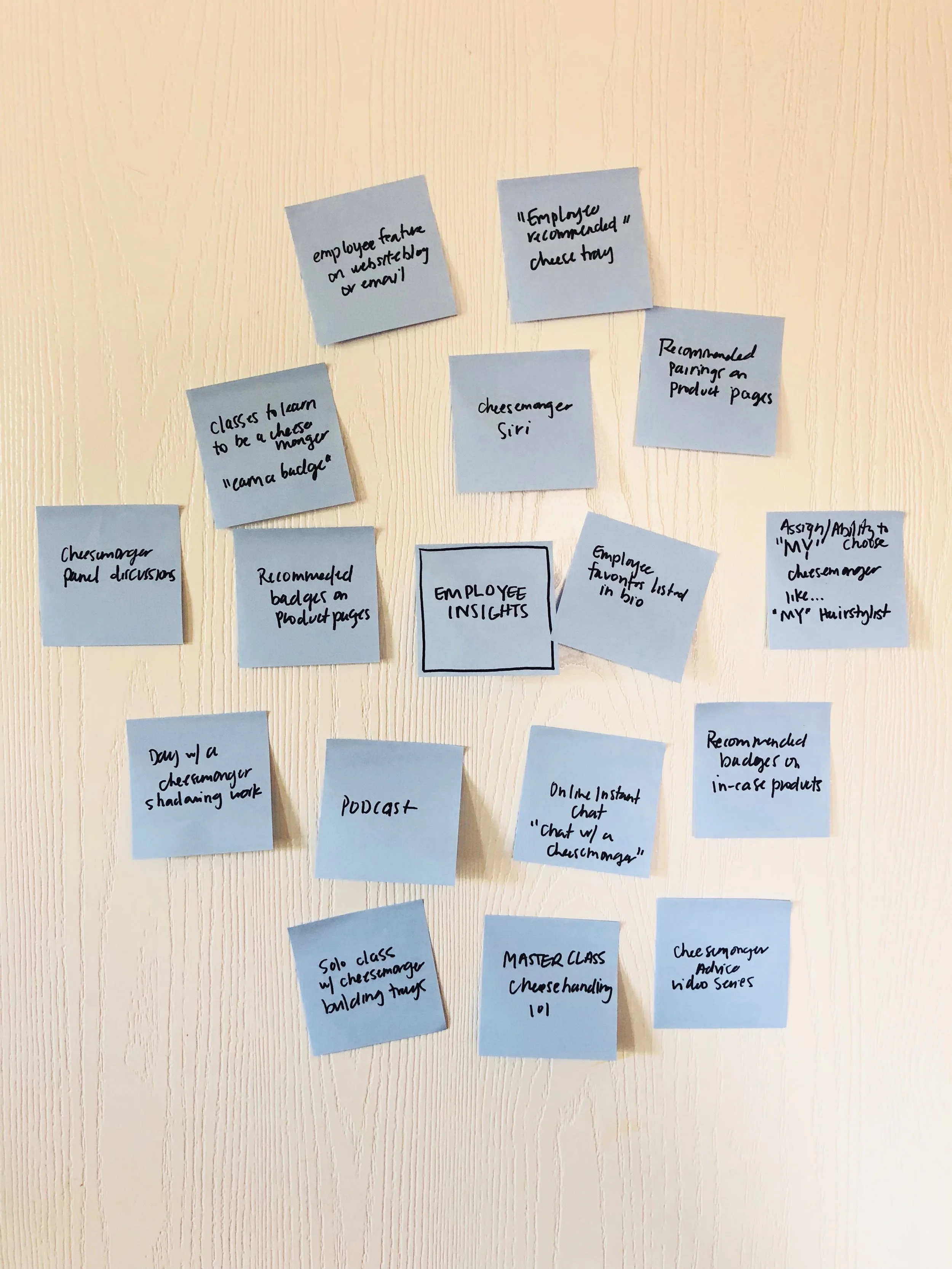 Customers prefer an in-person experience when purchasing small orders of cheeses and pairings, while they prefer an online experience when purchase for larger events or gift orders.