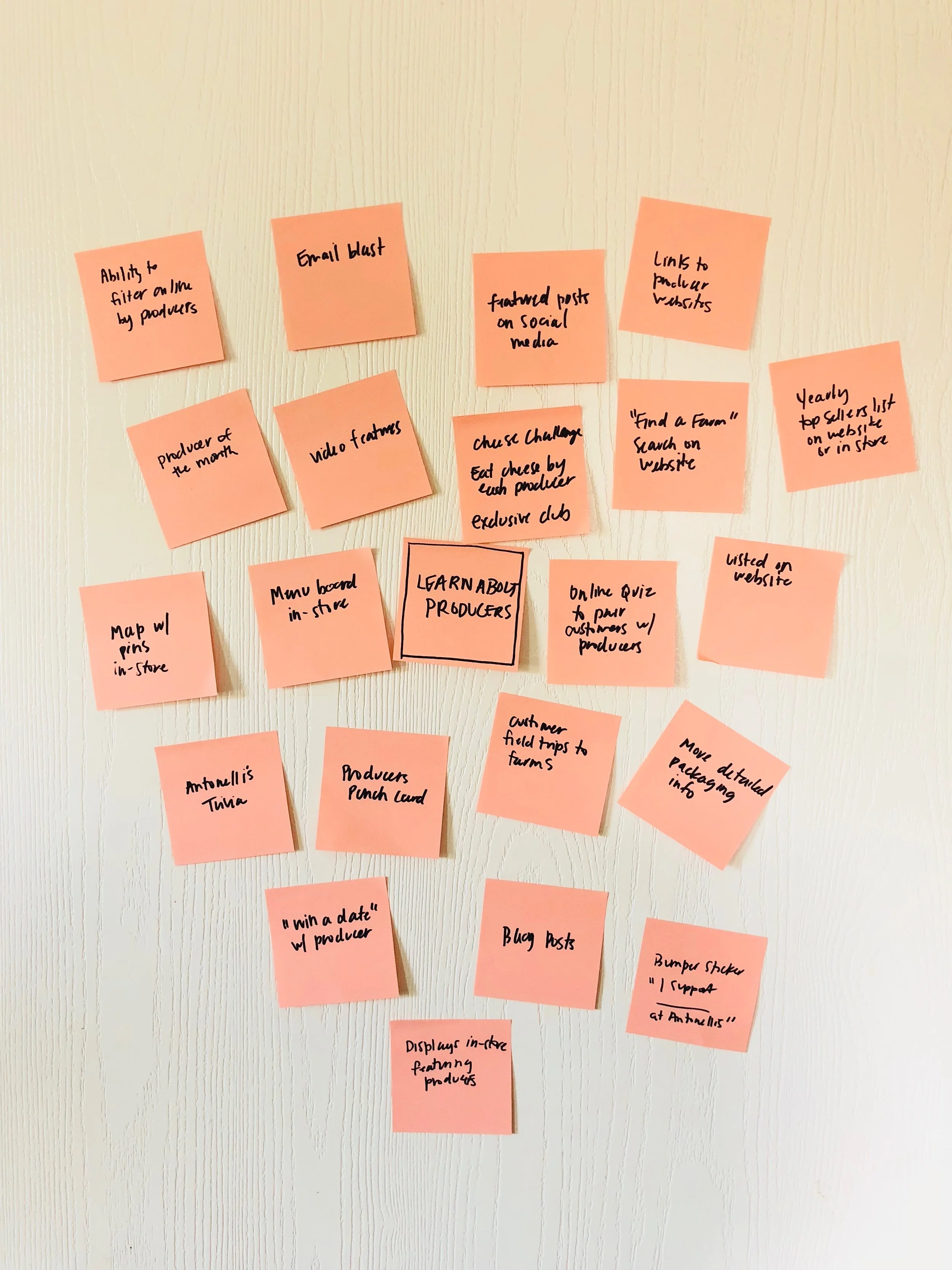After identifying some demographics and habits of specialty food consumers, I created provisional personas to form a broad idea of what Antonelli’s customers might look like. These personas put into focus the interviewees I should target during user interviews, knowing they would lend the most useful insight and feedback.