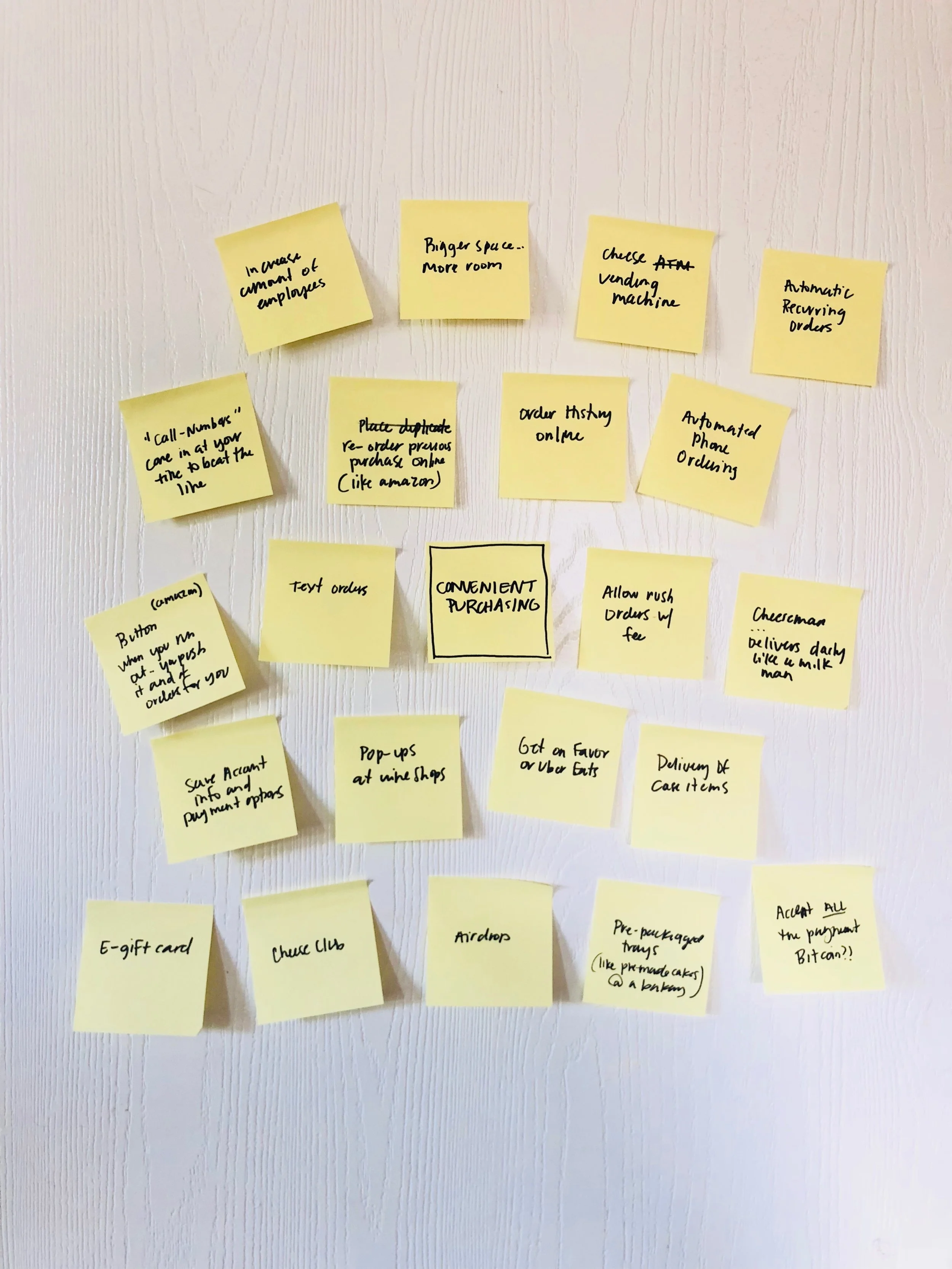 Over two consecutive days, I spoke with 7 customers on their experiences with Antonelli’s, other competitors, and their online purchasing habits as it related to food. I recorded each session, took notes on observations, and later transcribed my findings into a single document for analysis.